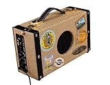Luna Guitars UKE SA 5, Take your show on the road in style with Luna's vintage suitcase - look ukulele amp! Vintage tolex and a leather handle are authentic touches, crowned by vintage Hawaiian travel stickers that you can place yourself. Guitar strap holders allow you to strap on the amp, plug in your uke and play untethered and unleashed! The amp opens for easy battery changes,storage of the included AC adapter, and even has a compartment with velcro lid to house your keys, cell phone, wallet or a small snack! ...